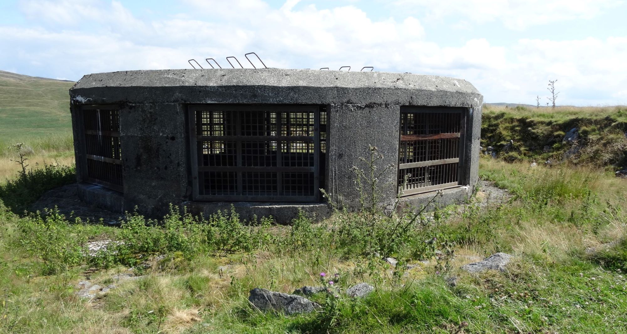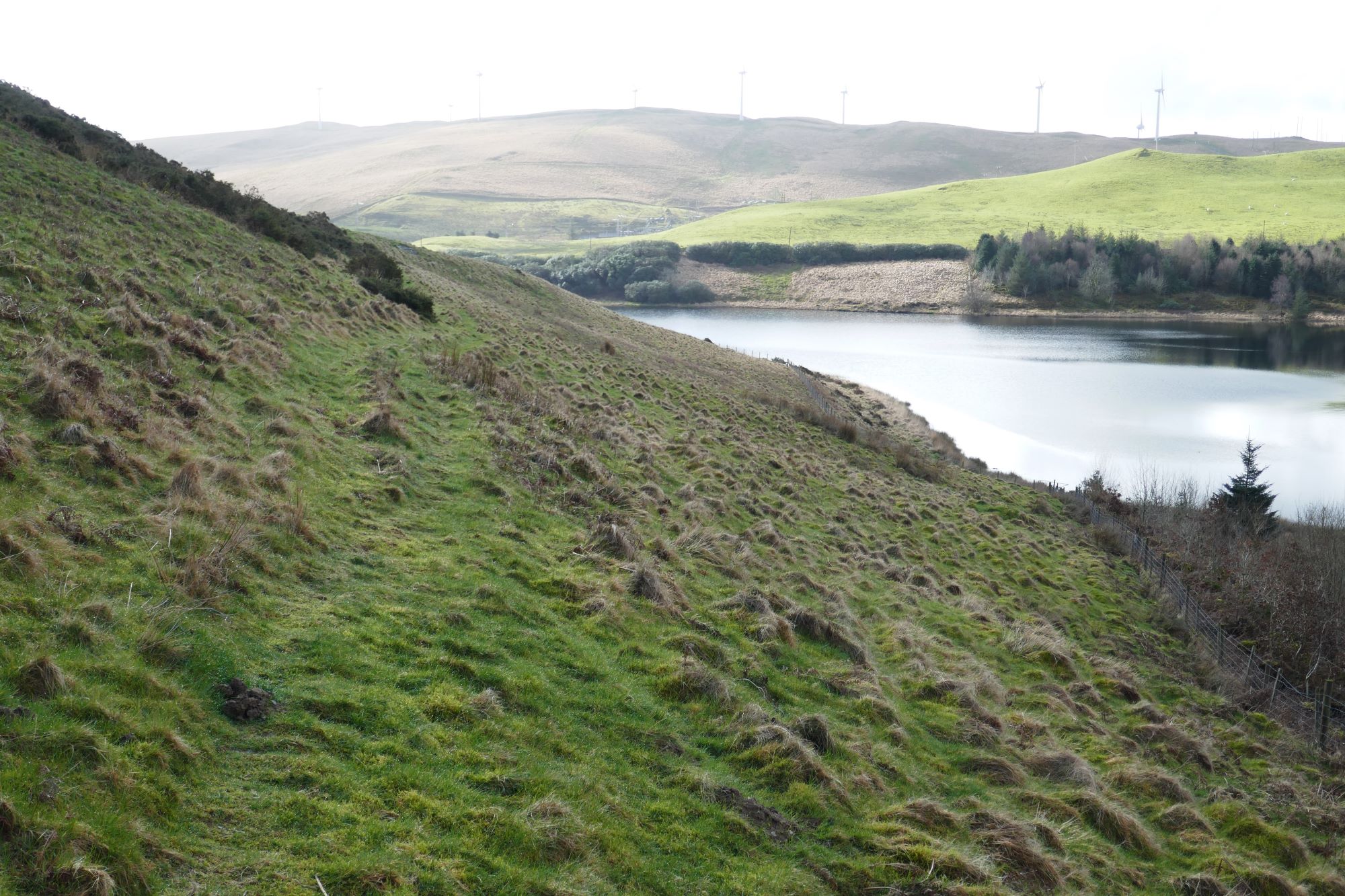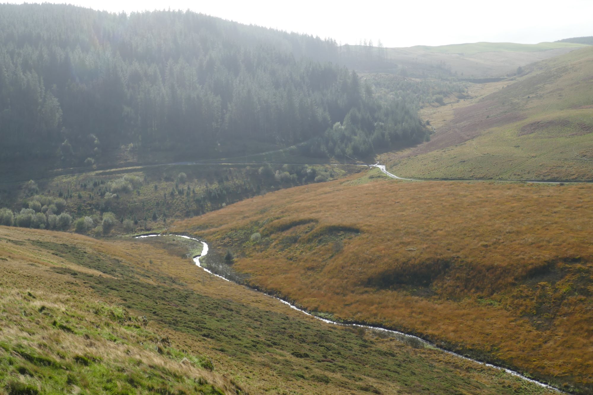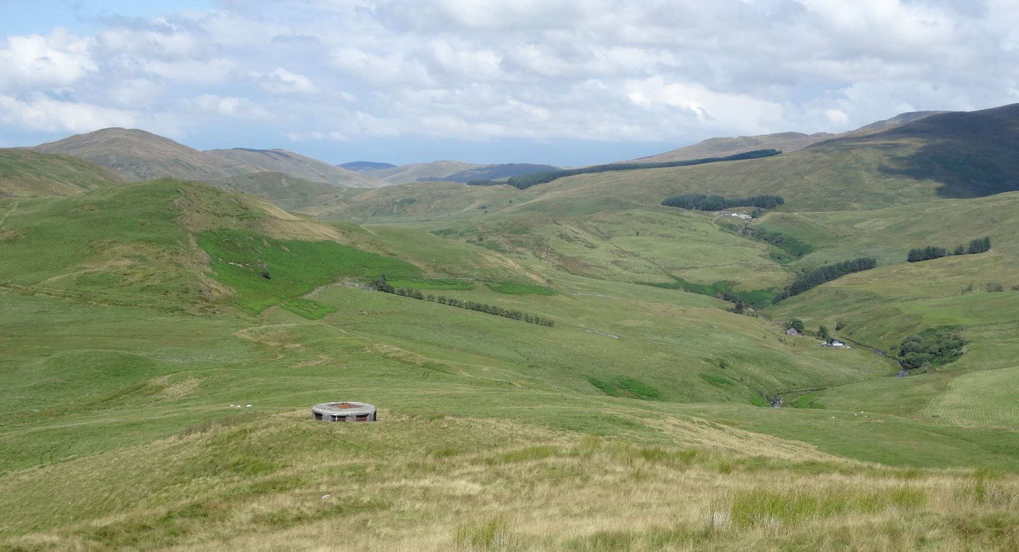 When ready to descend, continue on a faint path in the roughly northerly direction as before, descending steeply to an unusual landmark, the top of a ‘surge shaft’ for the Nant y moch hydroelectric scheme.