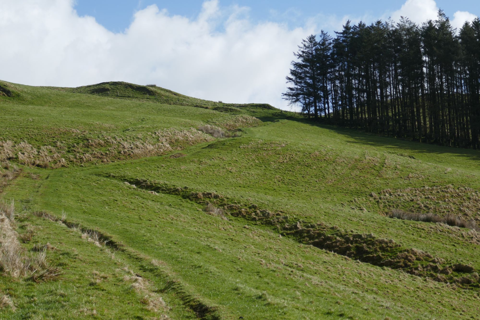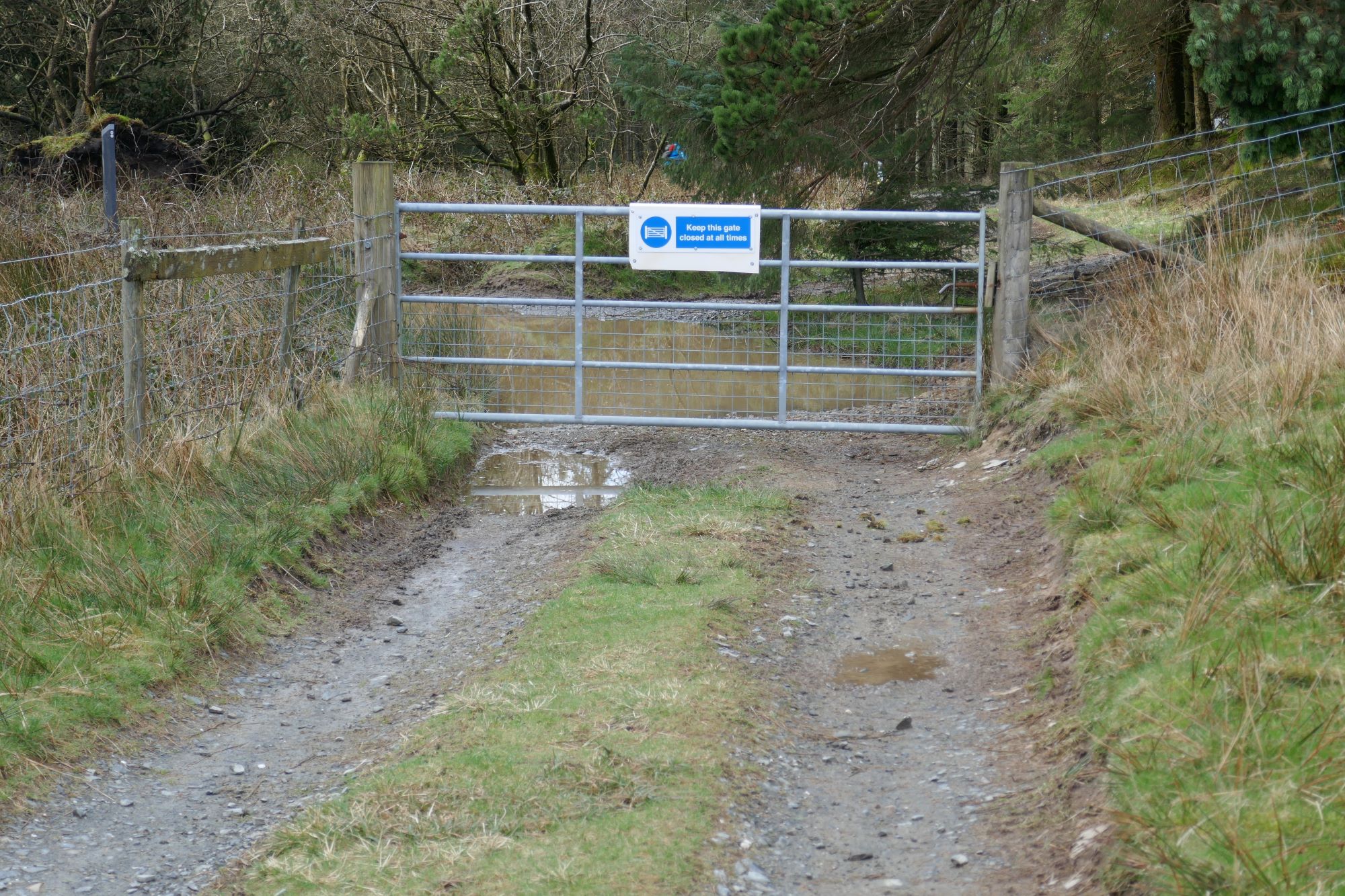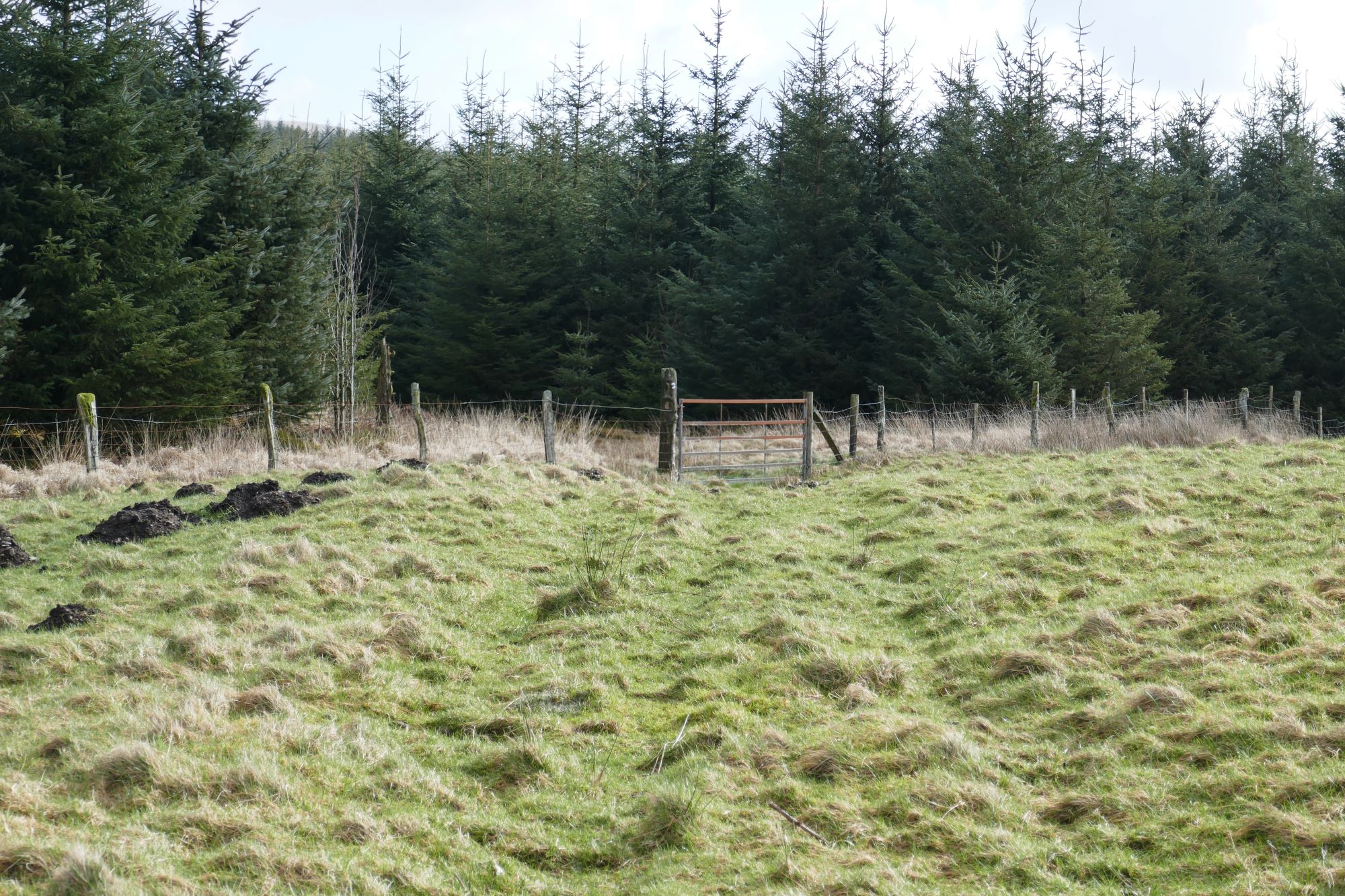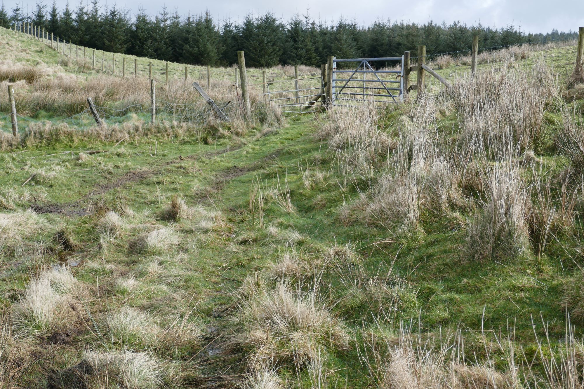 Then bear right towards a gate alongside an elongated copse of trees.