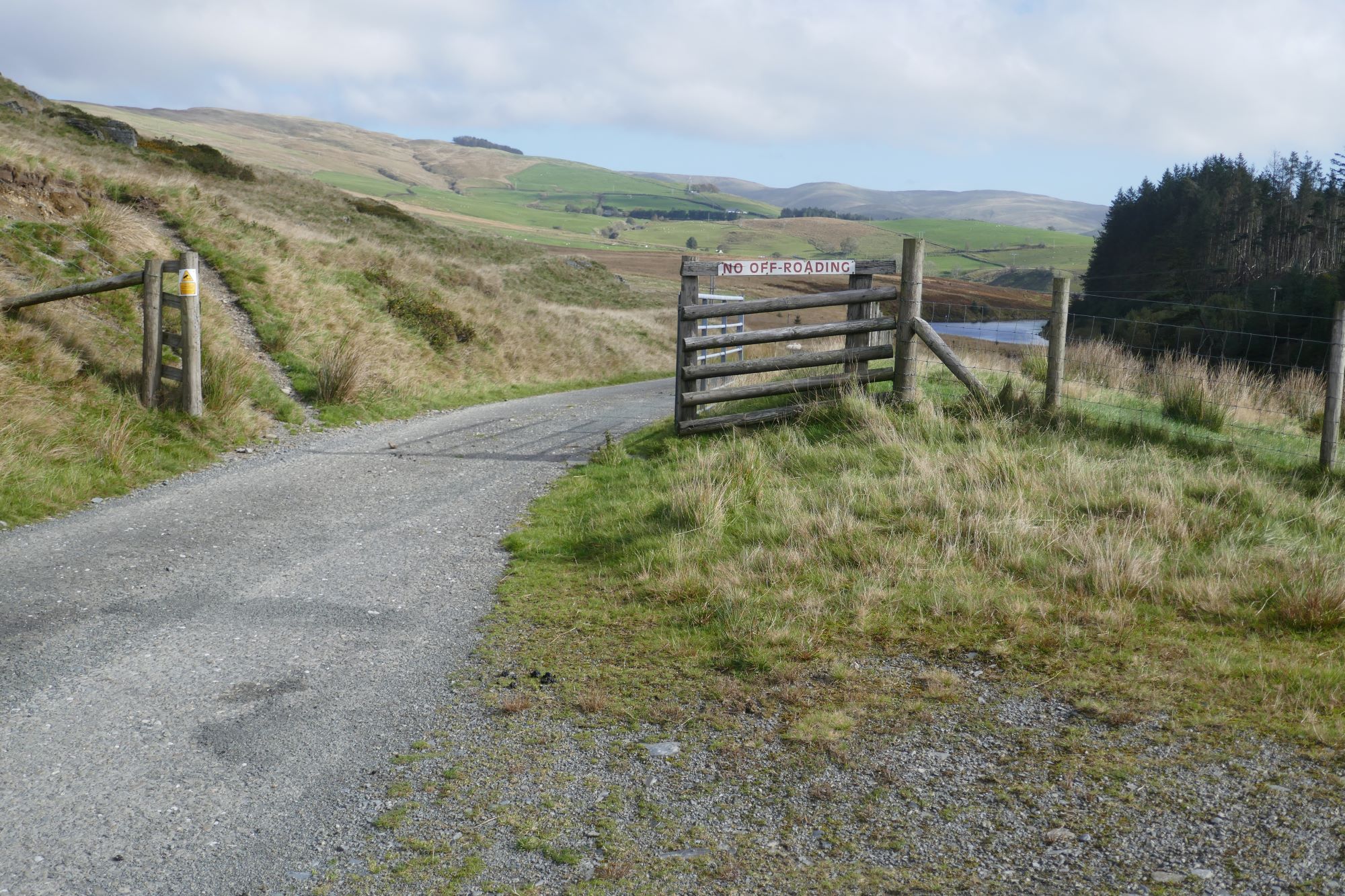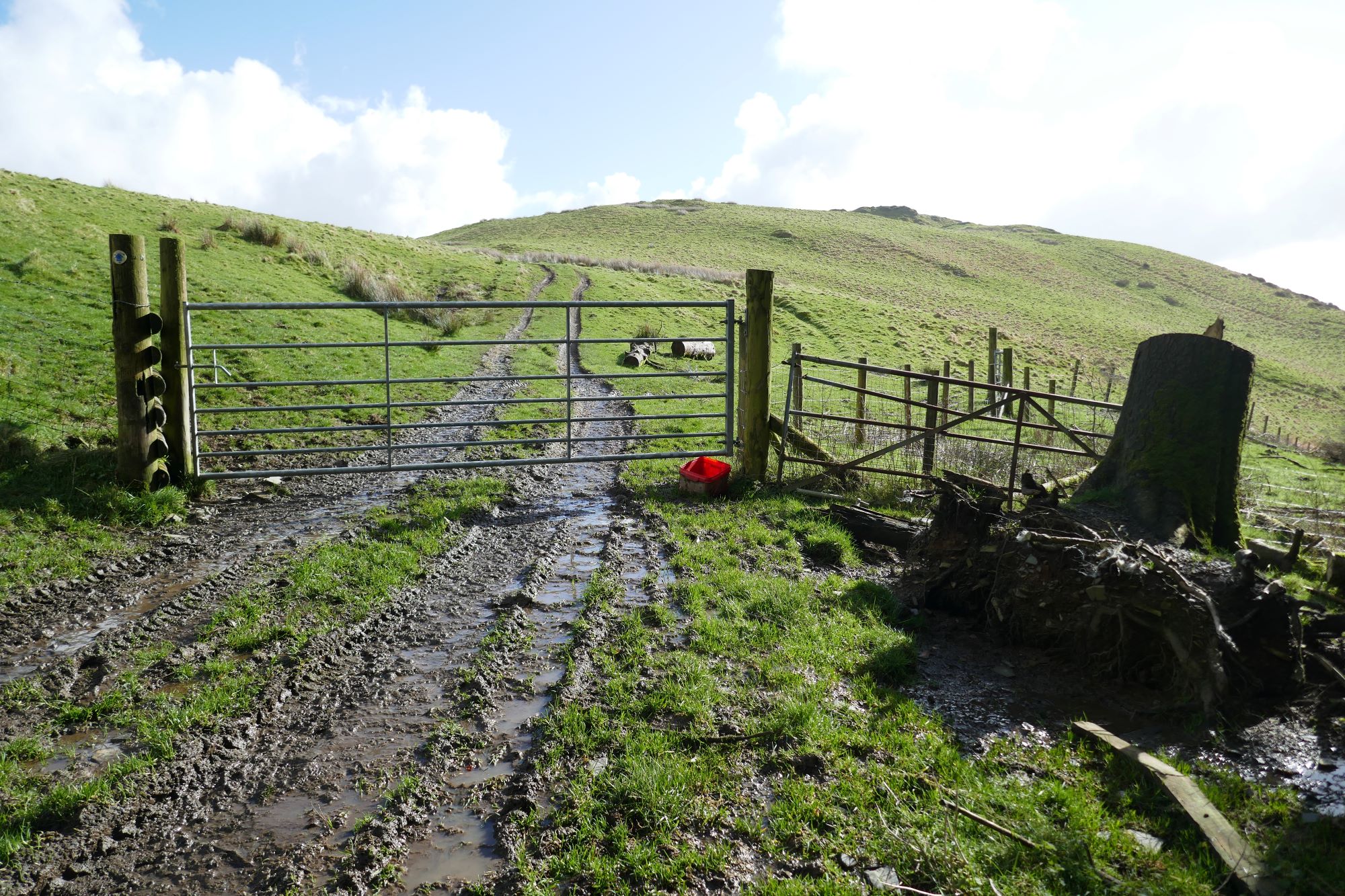 From here, soon take the less promising track bearing leftish, with lovely views, and avoiding the more obvious route ascending the hill to the right. You should arrive at another gate (see right-hand pic below):