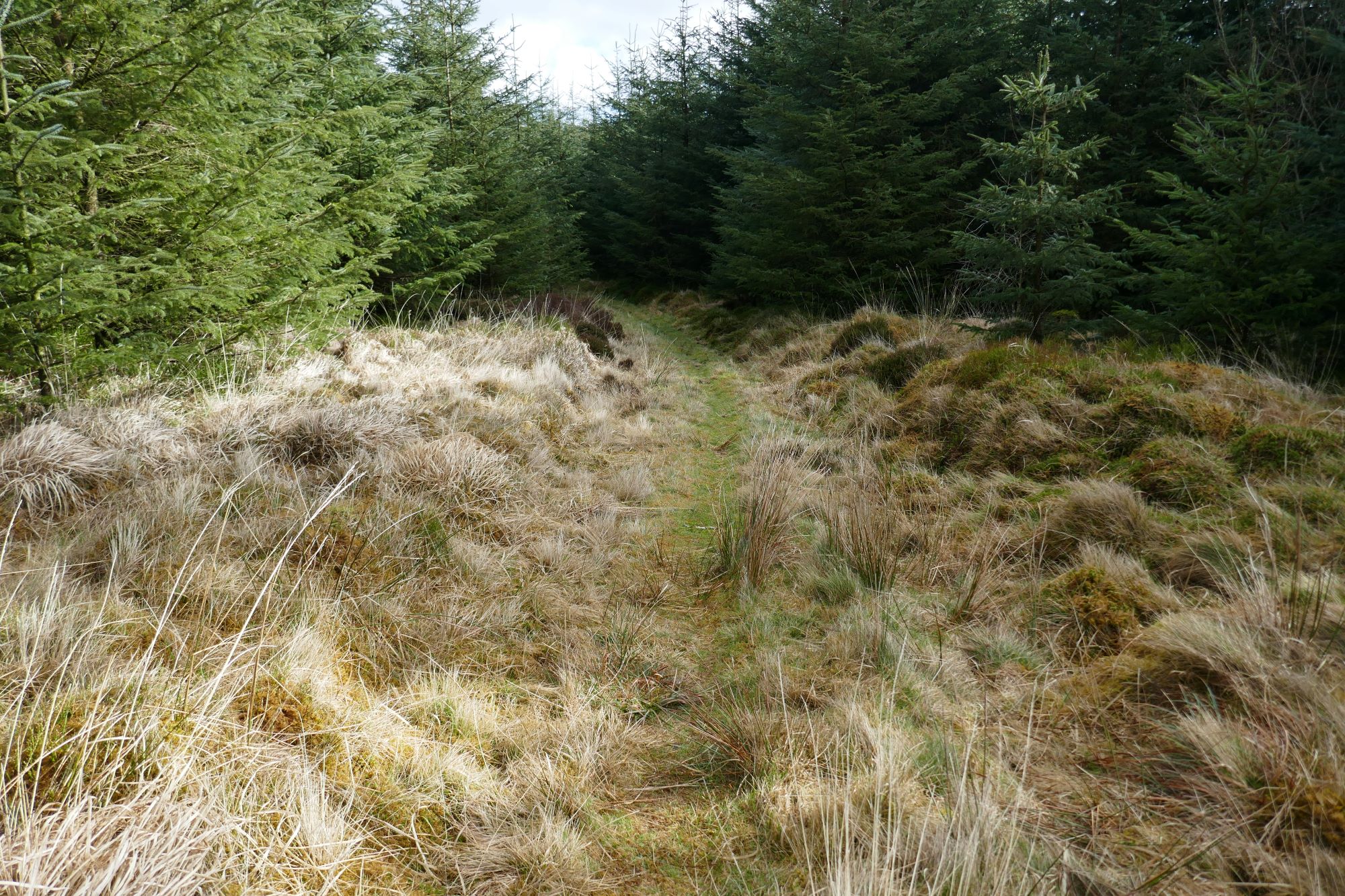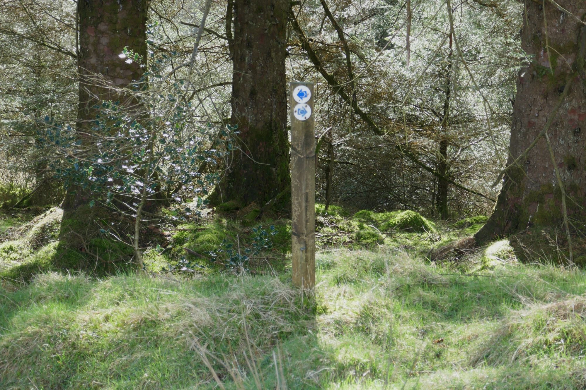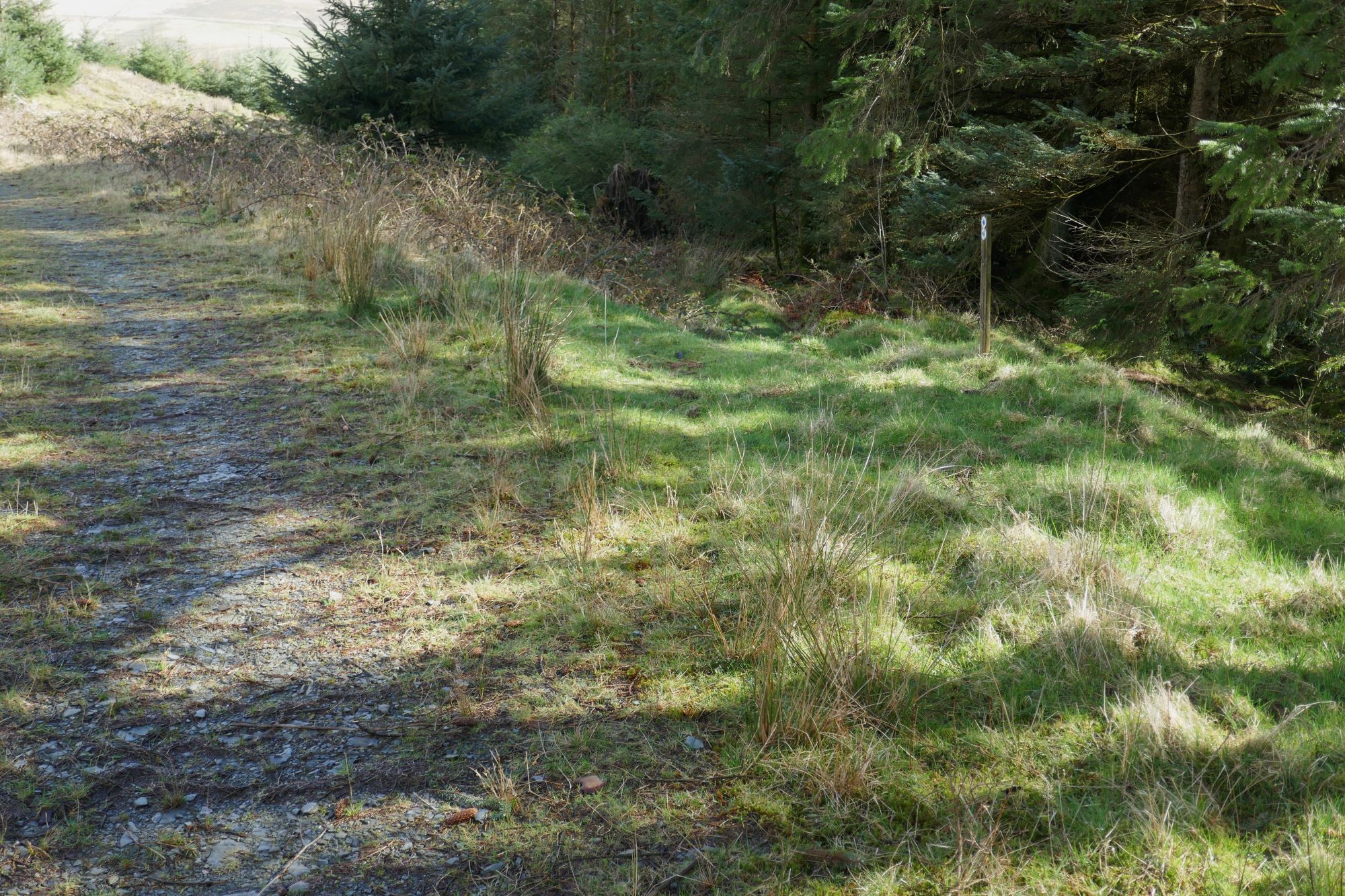 The small path is easy to follow through the forested area, soon joining a wider track where you turn right,leading eastwards.