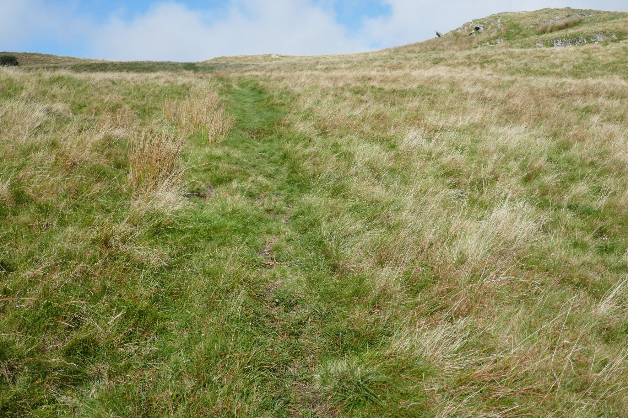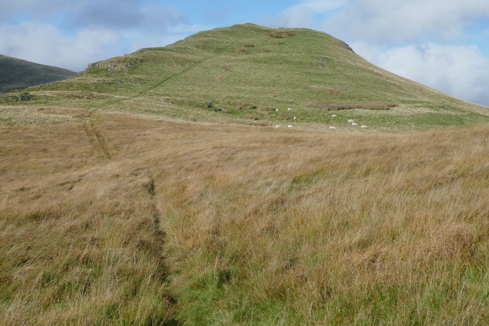 Ascend on this clear path, avoiding being diverted right to a small ‘false summit’, through a slightly flatter, wetter area: